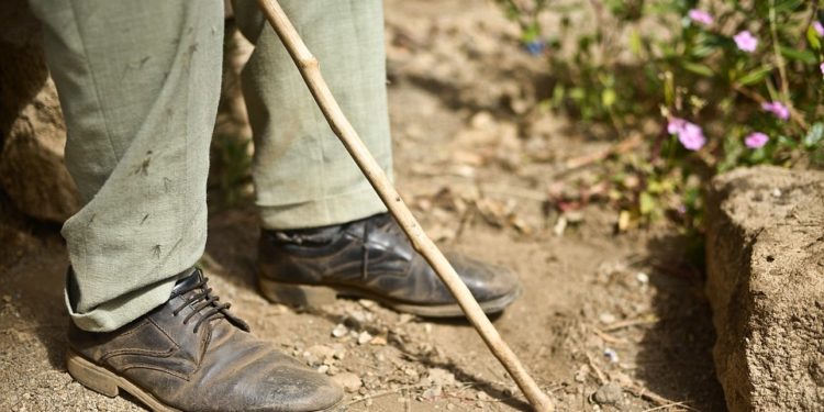 Cheptoo M., a blind woman, displays her walking cane. She was raped together with her younger sister by two General Service Unit officers at their home in a slum in Nairobi. Her husband became verbally abusive following the rape and eventually left her. Cheptoo is also living with HIV. She is raising her own child and four children of her sister who died in 2013, with no family support.